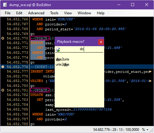 Information grows rapidly and intelligent machines instantly produce more and more data. So nowadays it is not a rare case to get to deal with large CSV, SQL, LOG or other text files of structured business data. Sometimes you may want to take a look inside and maybe make a small modification. Although there are plenty of text editors which cover different user's needs and wishes, you will probably quickly realize that only few of them are really able to handle such large files fluently. So if you looking for an editor, which has no problem to deal with many gigabytes large files and which is specially designed with all this needs in mind - give BssEditor a try and may be you will find a very versatile helper.